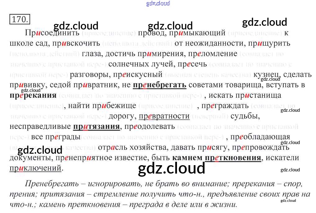 Ответ на задание 170 Учебник Русский язык за 10, 11 (десятый, одиннадцатый) класс Греков, Крючков, Чешко 2016