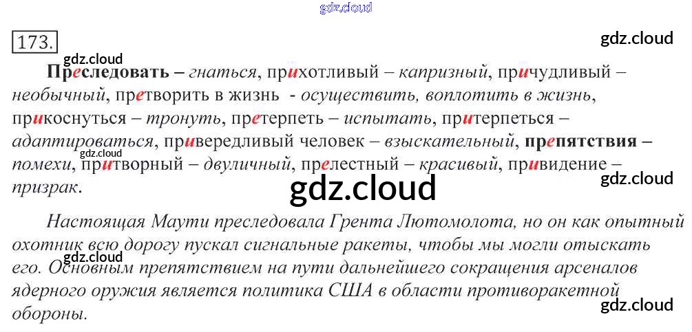 Ответ на задание 173 Учебник Русский язык за 10, 11 (десятый, одиннадцатый) класс Греков, Крючков, Чешко 2016