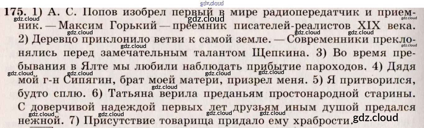 Ответ на задание 175 Учебник Русский язык за 10, 11 (десятый, одиннадцатый) класс Греков, Крючков, Чешко 2016