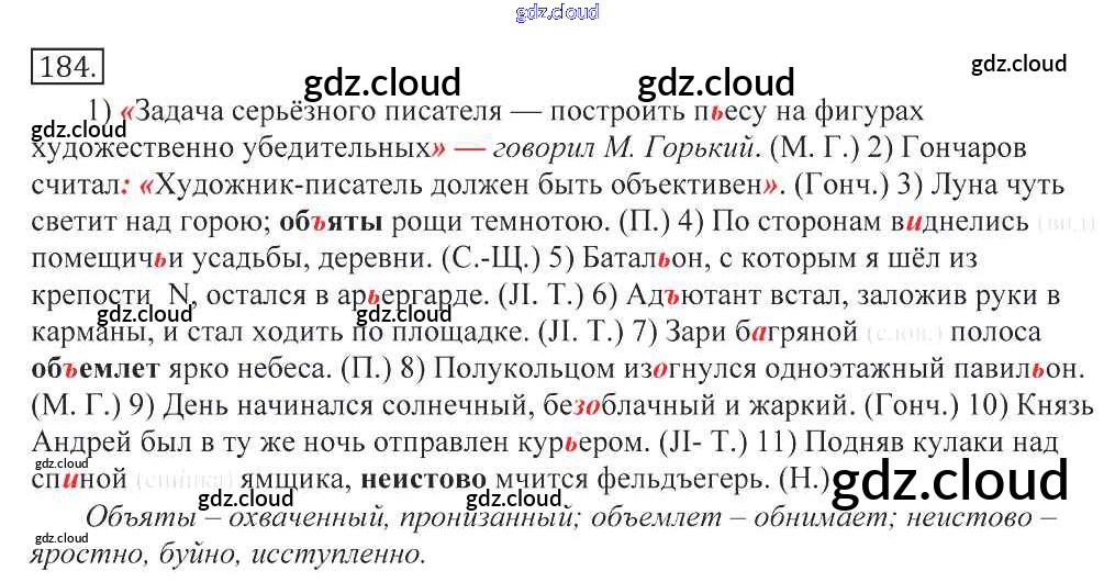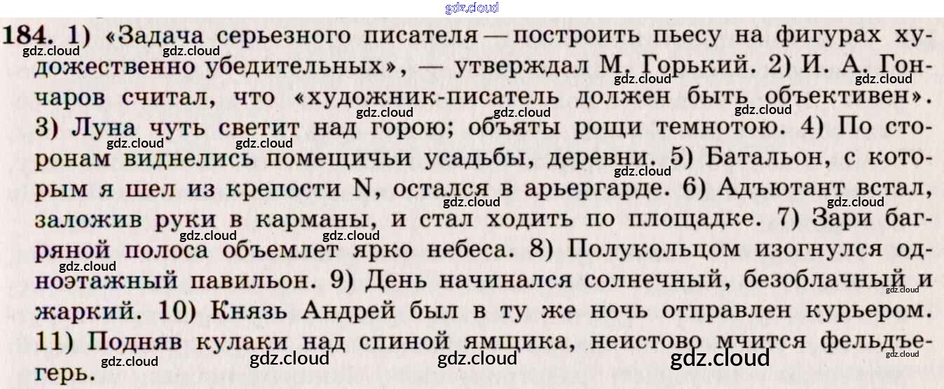 Ответ на задание 184 Учебник Русский язык за 10, 11 (десятый, одиннадцатый) класс Греков, Крючков, Чешко 2016
