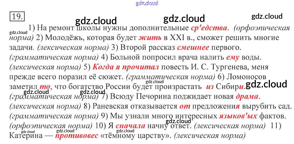 Ответ на задание 19 Учебник Русский язык за 10, 11 (десятый, одиннадцатый) класс Греков, Крючков, Чешко 2016 онлайн и без номера телефона.