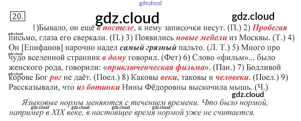 Ответ на задание 20 Учебник Русский язык за 10, 11 (десятый, одиннадцатый) класс Греков, Крючков, Чешко 2016 онлайн и без номера телефона.