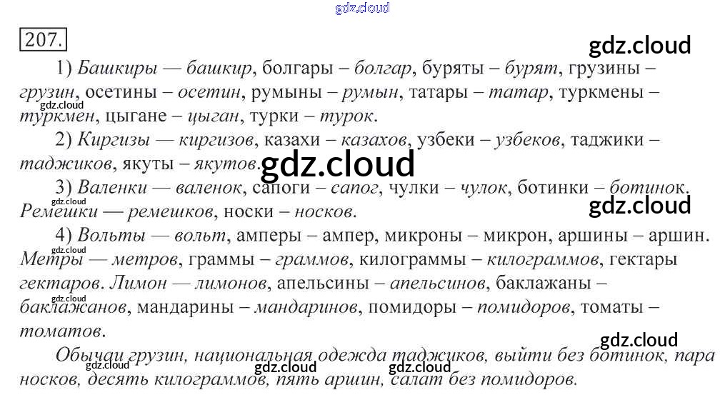 Ответ на задание 207 Учебник Русский язык за 10, 11 (десятый, одиннадцатый) класс Греков, Крючков, Чешко 2016