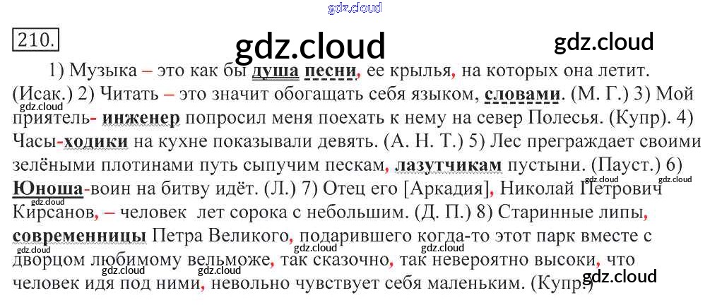 Ответ на задание 210 Учебник Русский язык за 10, 11 (десятый, одиннадцатый) класс Греков, Крючков, Чешко 2016