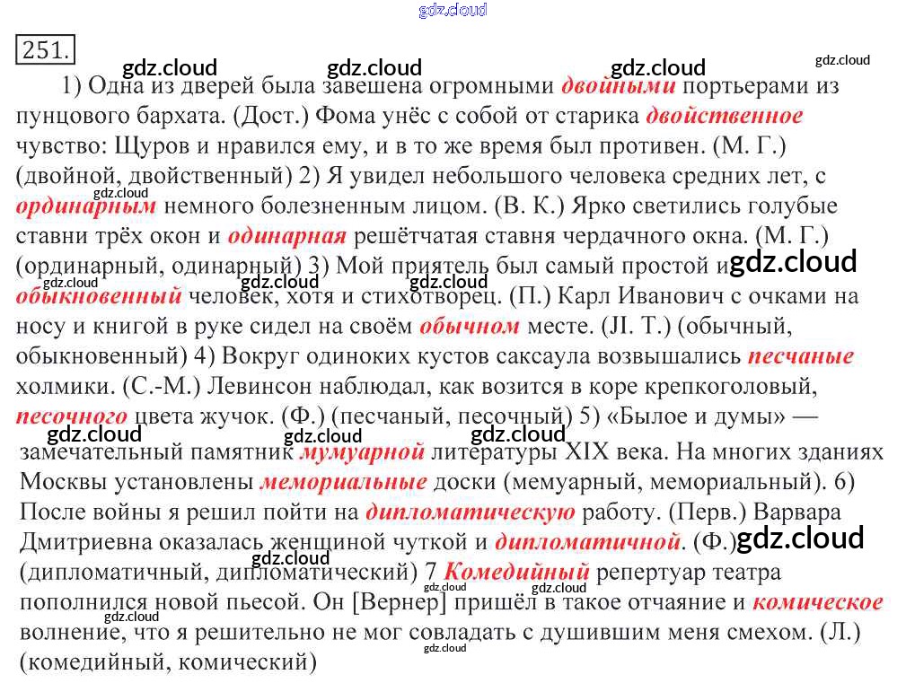 Ответ на задание 251 Учебник Русский язык за 10, 11 (десятый, одиннадцатый) класс Греков, Крючков, Чешко 2016