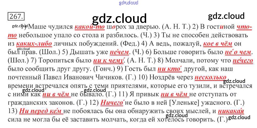 Ответ на задание 267 Учебник Русский язык за 10, 11 (десятый, одиннадцатый) класс Греков, Крючков, Чешко 2016