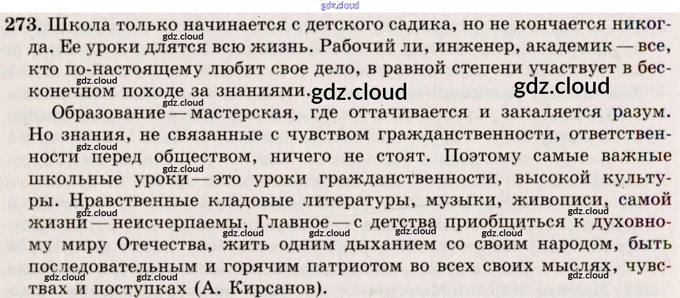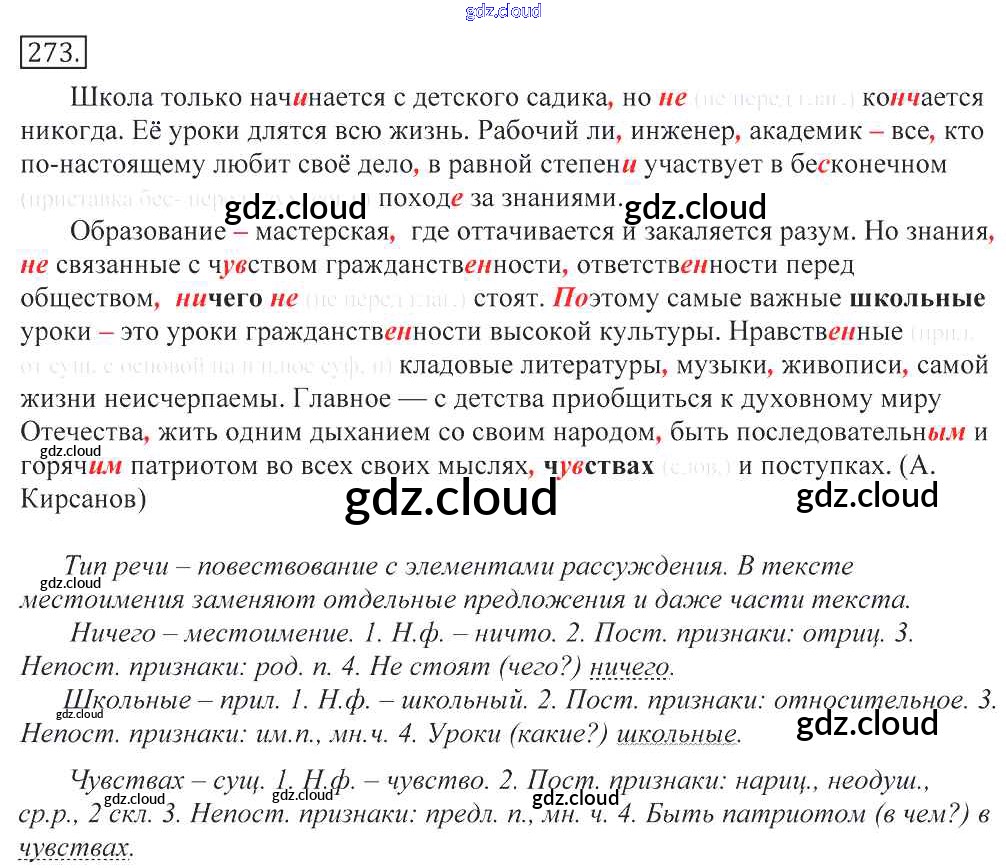 Ответ на задание 273 Учебник Русский язык за 10, 11 (десятый, одиннадцатый) класс Греков, Крючков, Чешко 2016