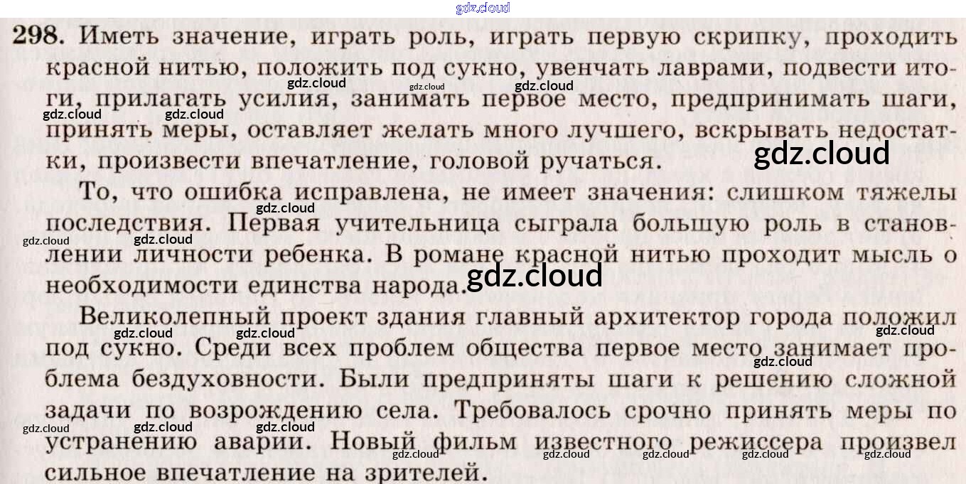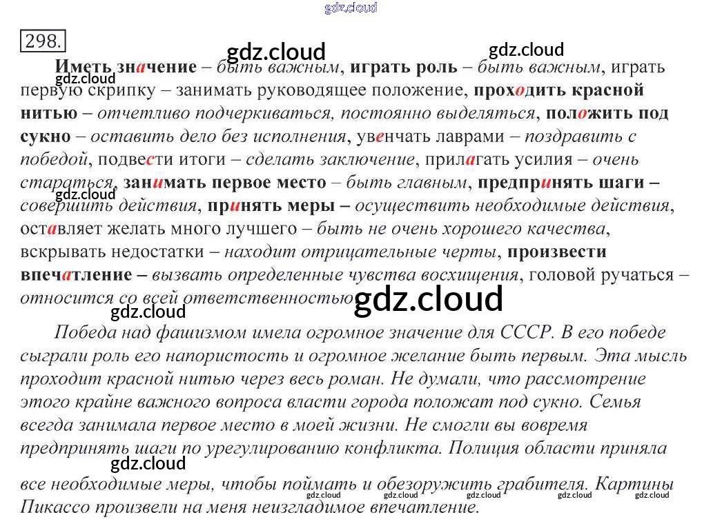 Ответ на задание 298 Учебник Русский язык за 10, 11 (десятый, одиннадцатый) класс Греков, Крючков, Чешко 2016