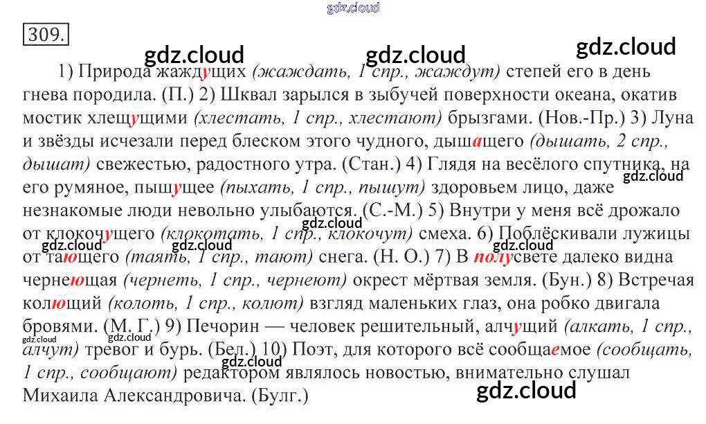 Ответ на задание 309 Учебник Русский язык за 10, 11 (десятый, одиннадцатый) класс Греков, Крючков, Чешко 2016