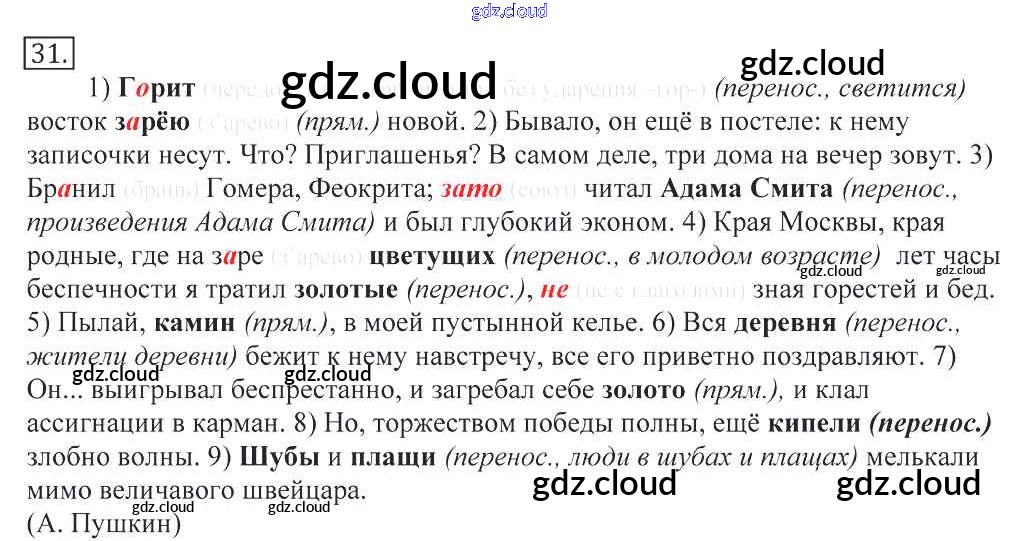 Ответ на задание 31 Учебник Русский язык за 10, 11 (десятый, одиннадцатый) класс Греков, Крючков, Чешко 2016