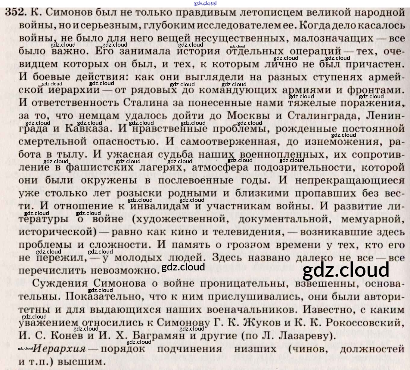 Ответ на задание 352 Учебник Русский язык за 10, 11 (десятый, одиннадцатый) класс Греков, Крючков, Чешко 2016