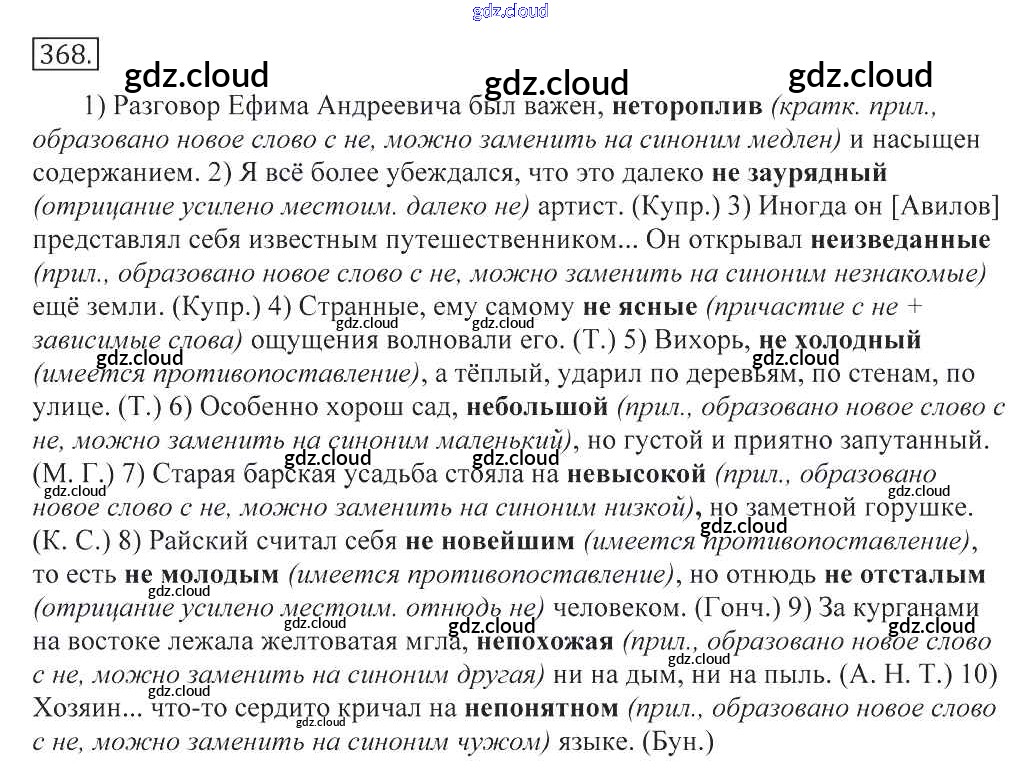 Ответ на задание 368 Учебник Русский язык за 10, 11 (десятый, одиннадцатый) класс Греков, Крючков, Чешко 2016