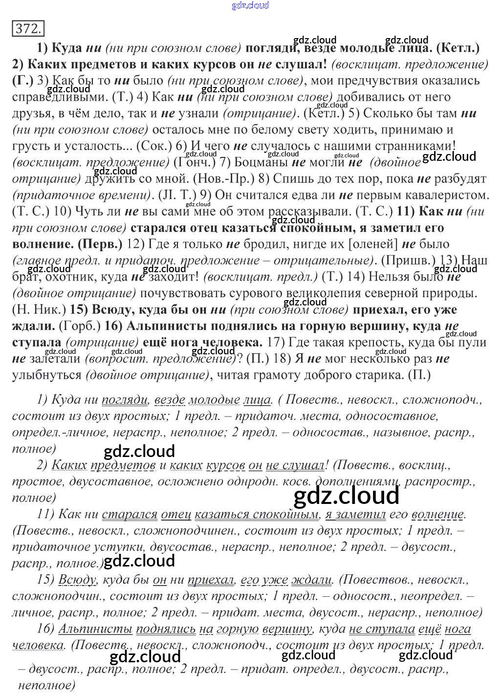 Ответ на задание 372 Учебник Русский язык за 10, 11 (десятый, одиннадцатый) класс Греков, Крючков, Чешко 2016