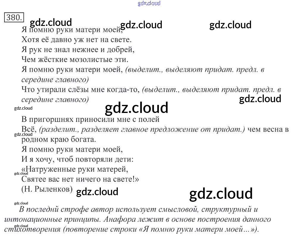 Ответ на задание 380 Учебник Русский язык за 10, 11 (десятый, одиннадцатый) класс Греков, Крючков, Чешко 2016 онлайн и без номера телефона.