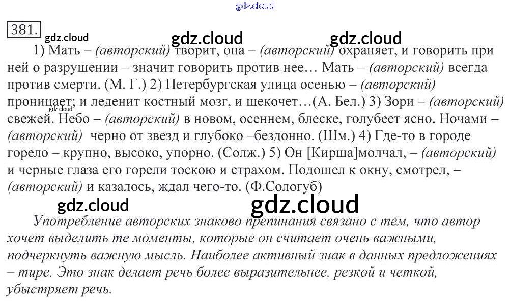 Ответ на задание 381 Учебник Русский язык за 10, 11 (десятый, одиннадцатый) класс Греков, Крючков, Чешко 2016 онлайн и без номера телефона.
