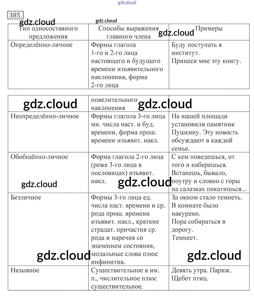 Ответ на задание 385 Учебник Русский язык за 10, 11 (десятый, одиннадцатый) класс Греков, Крючков, Чешко 2016 онлайн и без номера телефона.