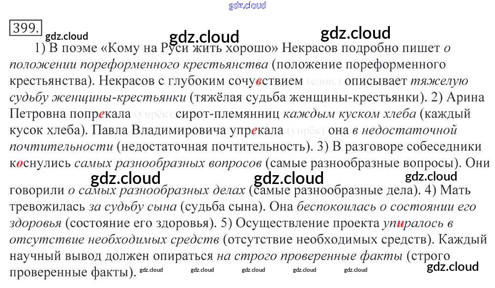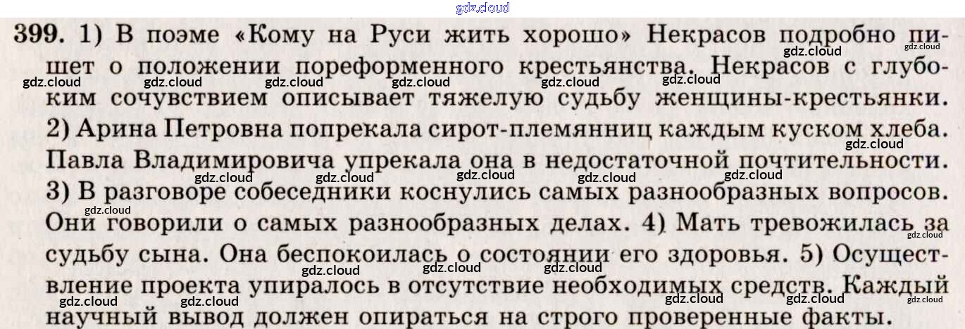 Ответ на задание 399 Учебник Русский язык за 10, 11 (десятый, одиннадцатый) класс Греков, Крючков, Чешко 2016