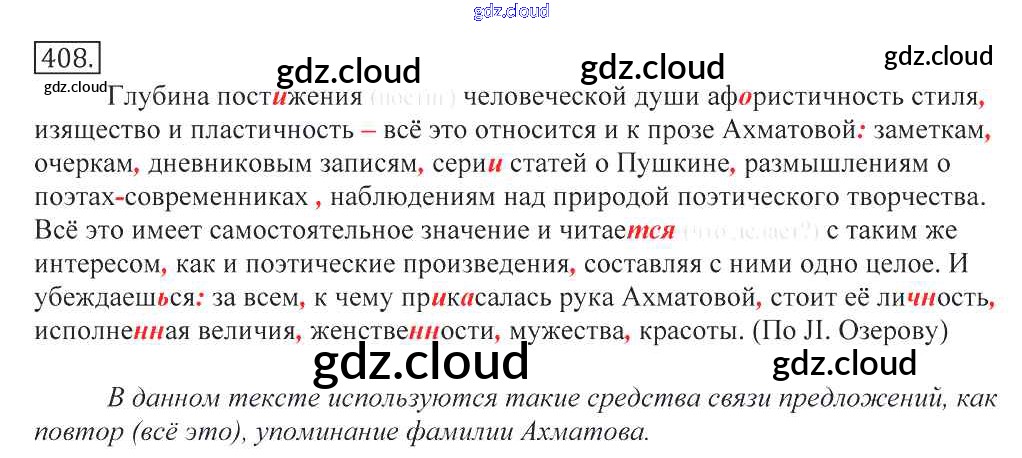 Ответ на задание 408 Учебник Русский язык за 10, 11 (десятый, одиннадцатый) класс Греков, Крючков, Чешко 2016
