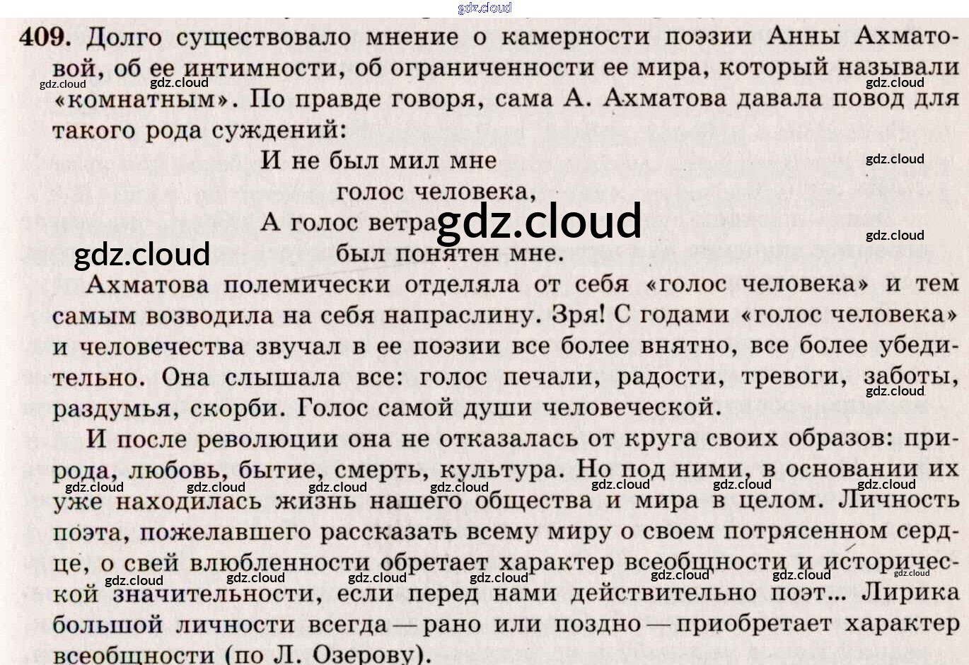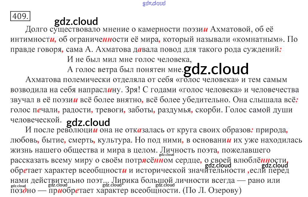 Ответ на задание 409 Учебник Русский язык за 10, 11 (десятый, одиннадцатый) класс Греков, Крючков, Чешко 2016
