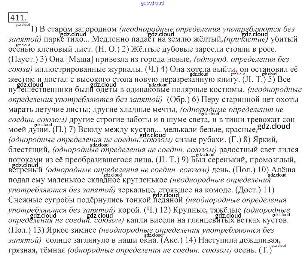 Ответ на задание 411 Учебник Русский язык за 10, 11 (десятый, одиннадцатый) класс Греков, Крючков, Чешко 2016