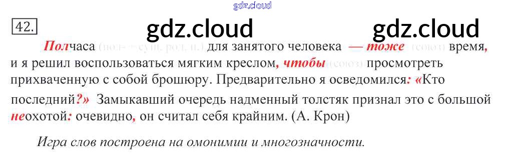 Ответ на задание 42 Учебник Русский язык за 10, 11 (десятый, одиннадцатый) класс Греков, Крючков, Чешко 2016