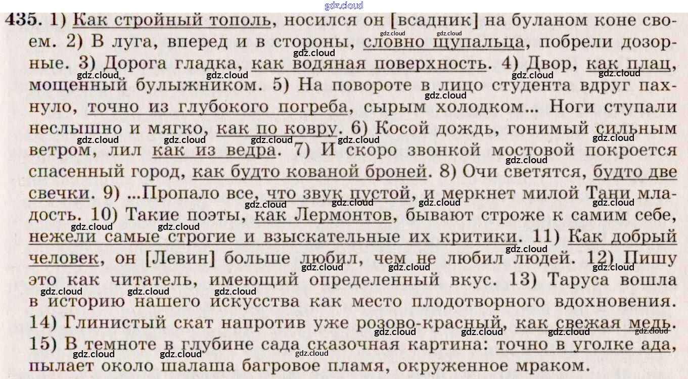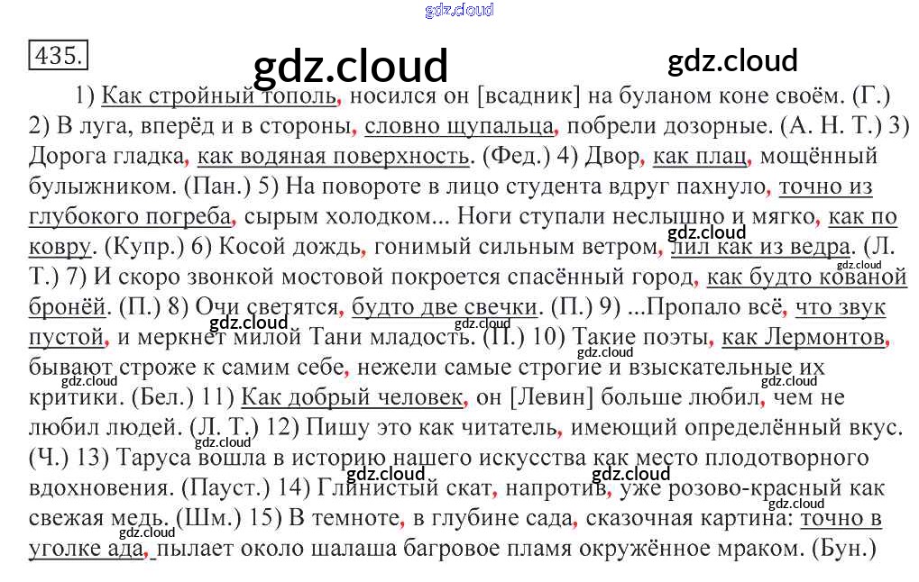 Ответ на задание 435 Учебник Русский язык за 10, 11 (десятый, одиннадцатый) класс Греков, Крючков, Чешко 2016