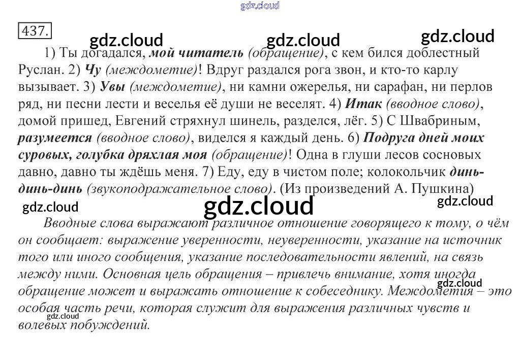 Ответ на задание 437 Учебник Русский язык за 10, 11 (десятый, одиннадцатый) класс Греков, Крючков, Чешко 2016 онлайн и без номера телефона.