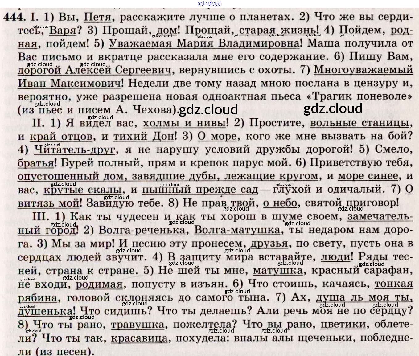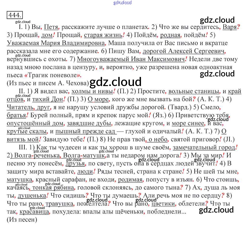 Ответ на задание 444 Учебник Русский язык за 10, 11 (десятый, одиннадцатый) класс Греков, Крючков, Чешко 2016