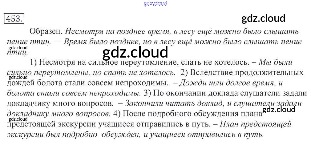 Ответ на задание 453 Учебник Русский язык за 10, 11 (десятый, одиннадцатый) класс Греков, Крючков, Чешко 2016