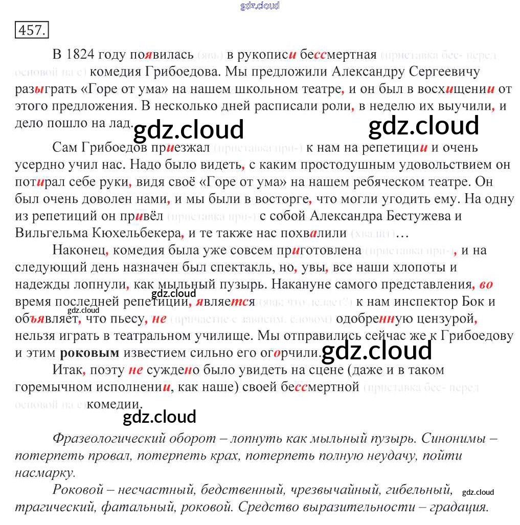 Ответ на задание 457 Учебник Русский язык за 10, 11 (десятый, одиннадцатый) класс Греков, Крючков, Чешко 2016