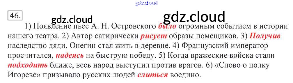 Ответ на задание 46 Учебник Русский язык за 10, 11 (десятый, одиннадцатый) класс Греков, Крючков, Чешко 2016