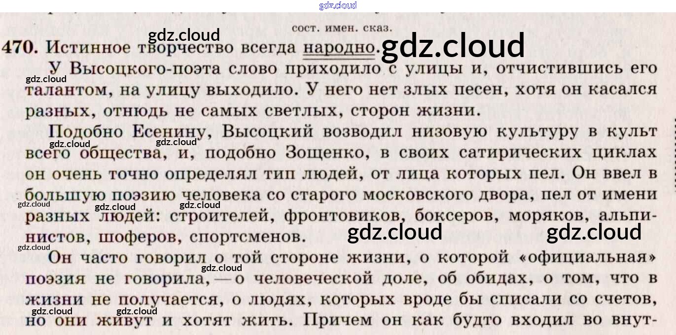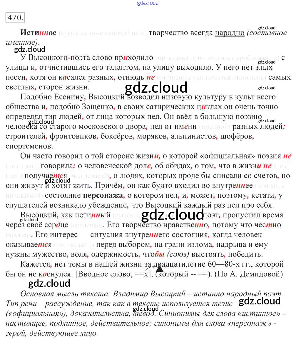 Ответ на задание 470 Учебник Русский язык за 10, 11 (десятый, одиннадцатый) класс Греков, Крючков, Чешко 2016