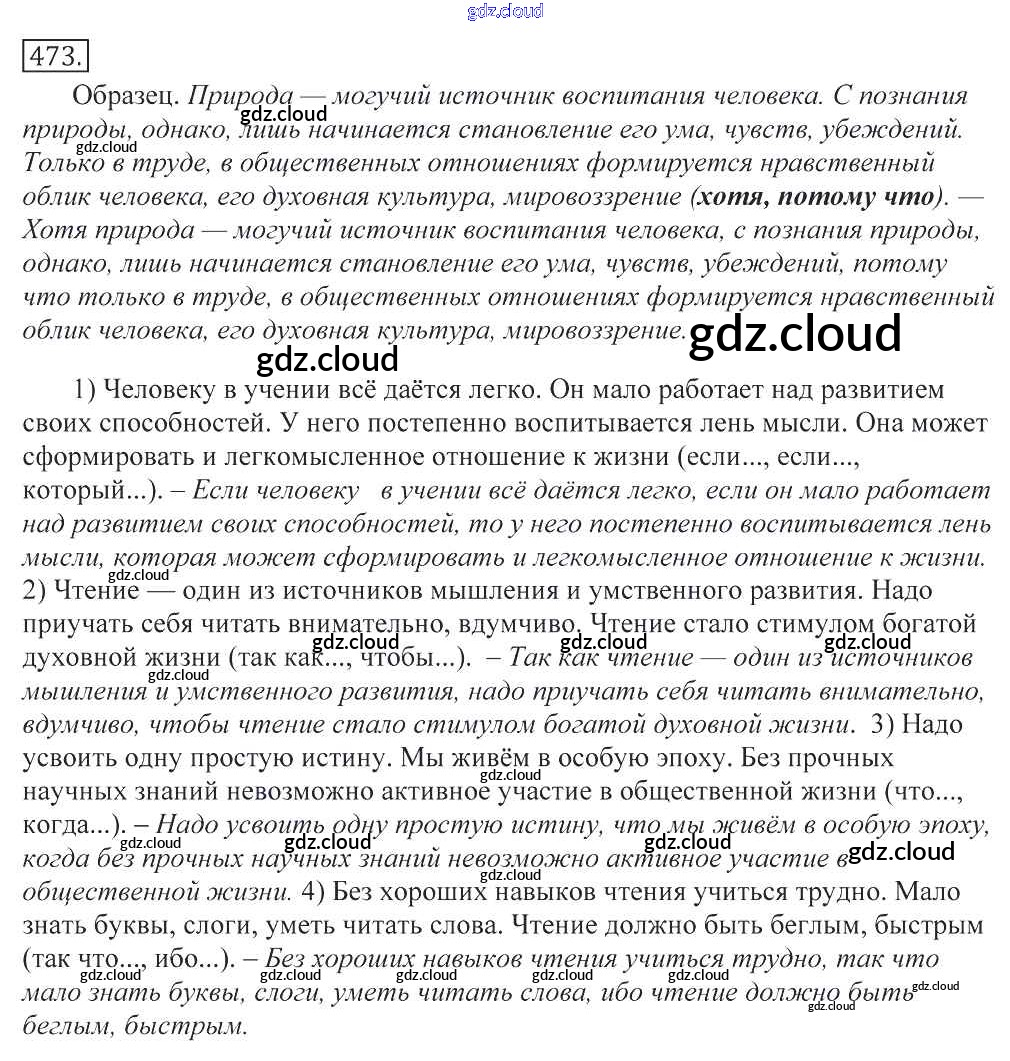 Ответ на задание 473 Учебник Русский язык за 10, 11 (десятый, одиннадцатый) класс Греков, Крючков, Чешко 2016