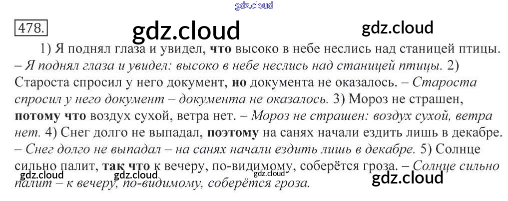 Ответ на задание 478 Учебник Русский язык за 10, 11 (десятый, одиннадцатый) класс Греков, Крючков, Чешко 2016