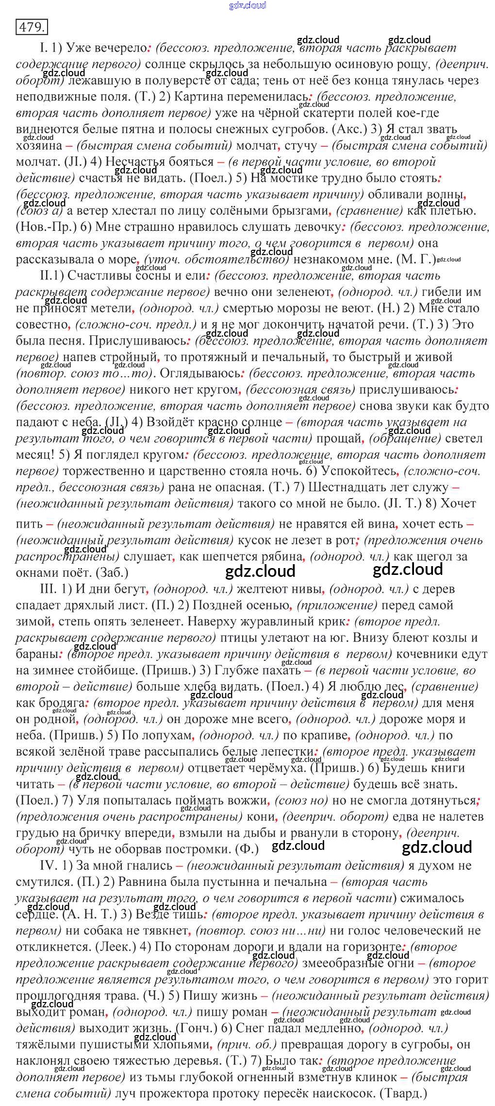 Ответ на задание 479 Учебник Русский язык за 10, 11 (десятый, одиннадцатый) класс Греков, Крючков, Чешко 2016