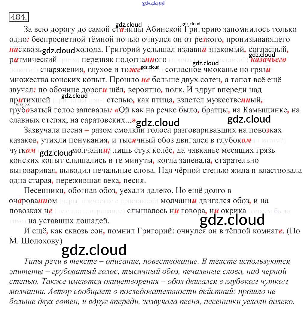 Ответ на задание 484 Учебник Русский язык за 10, 11 (десятый, одиннадцатый) класс Греков, Крючков, Чешко 2016