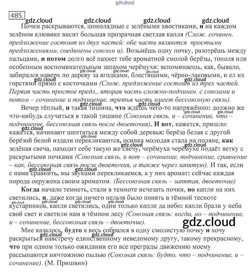 Ответ на задание 485 Учебник Русский язык за 10, 11 (десятый, одиннадцатый) класс Греков, Крючков, Чешко 2016 онлайн и без номера телефона.