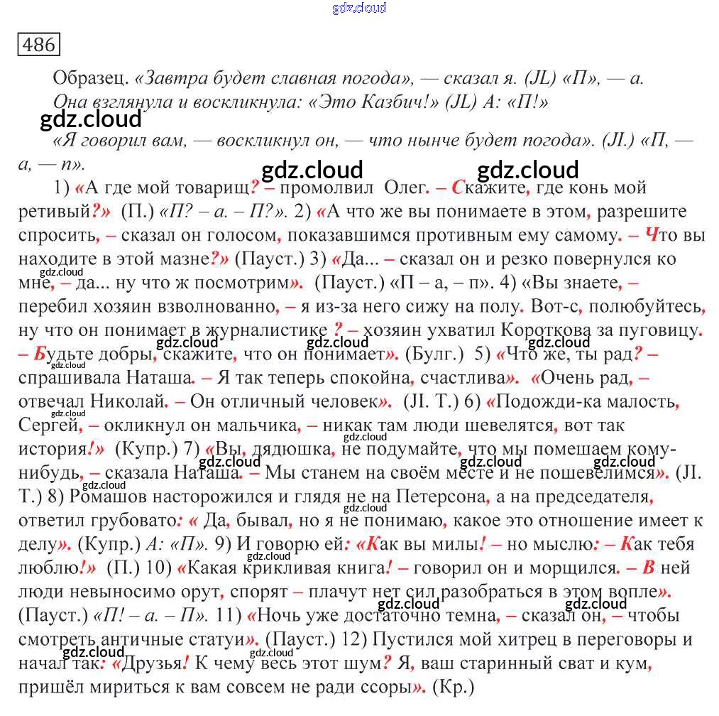 Ответ на задание 486 Учебник Русский язык за 10, 11 (десятый, одиннадцатый) класс Греков, Крючков, Чешко 2016