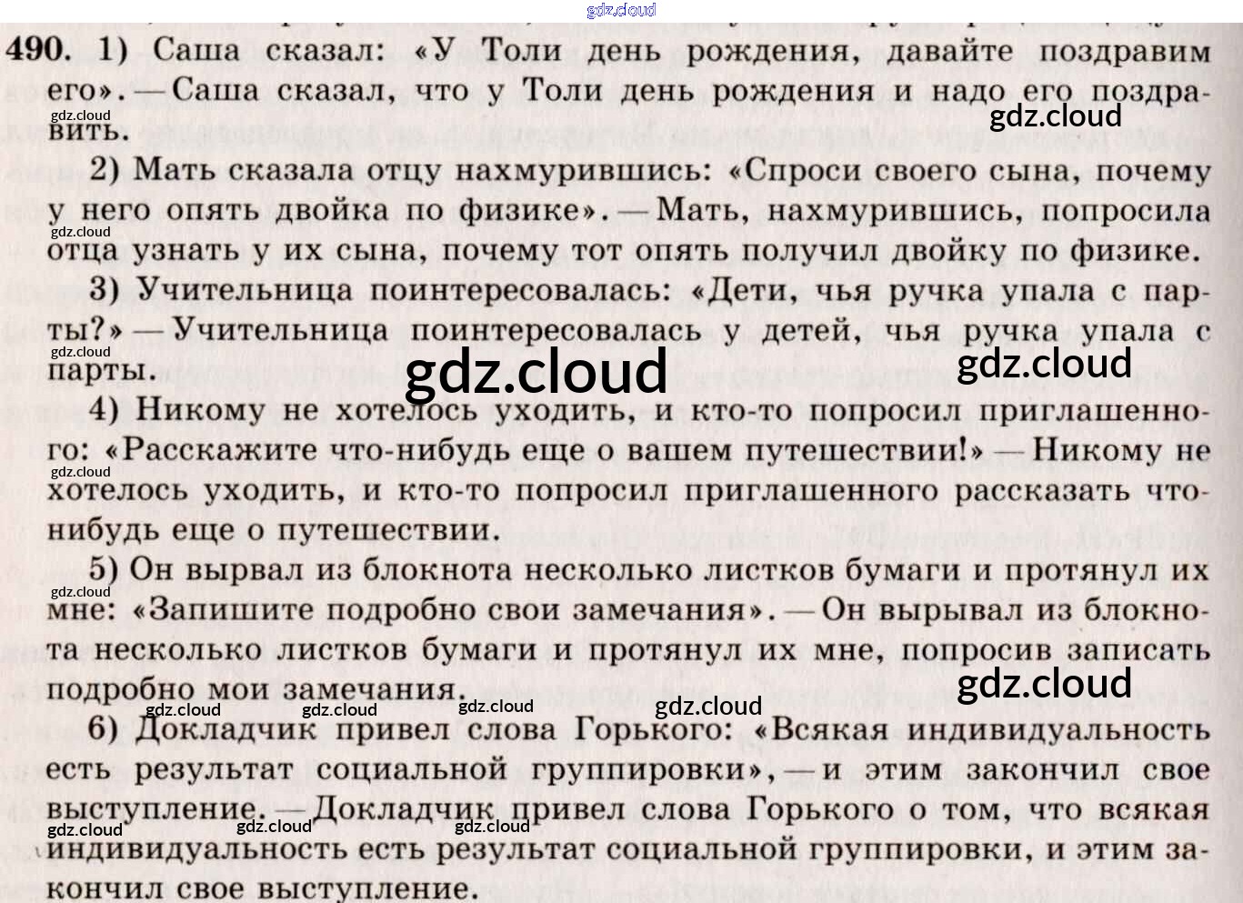 Ответ на задание 490 Учебник Русский язык за 10, 11 (десятый, одиннадцатый) класс Греков, Крючков, Чешко 2016