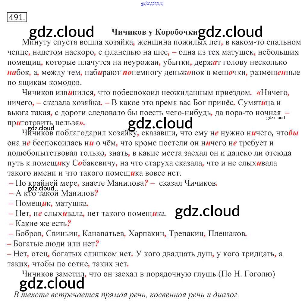 Ответ на задание 491 Учебник Русский язык за 10, 11 (десятый, одиннадцатый) класс Греков, Крючков, Чешко 2016