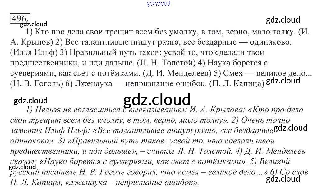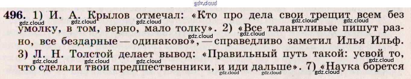 Ответ на задание 496 Учебник Русский язык за 10, 11 (десятый, одиннадцатый) класс Греков, Крючков, Чешко 2016