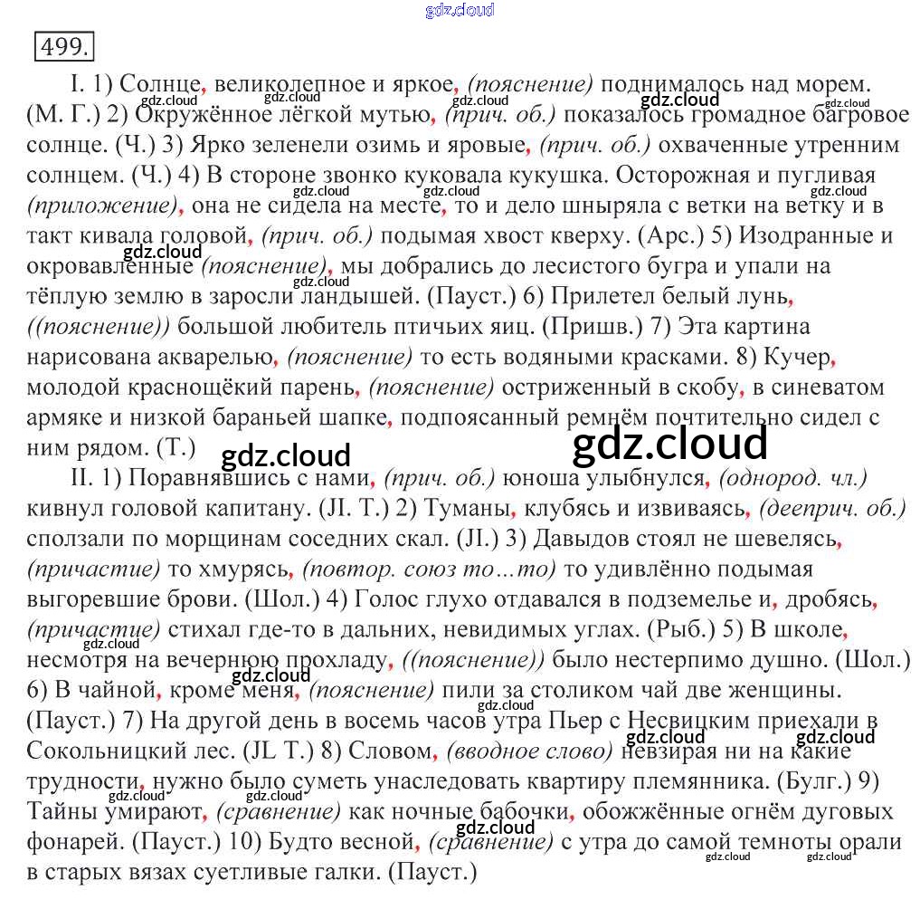 Ответ на задание 499 Учебник Русский язык за 10, 11 (десятый, одиннадцатый) класс Греков, Крючков, Чешко 2016