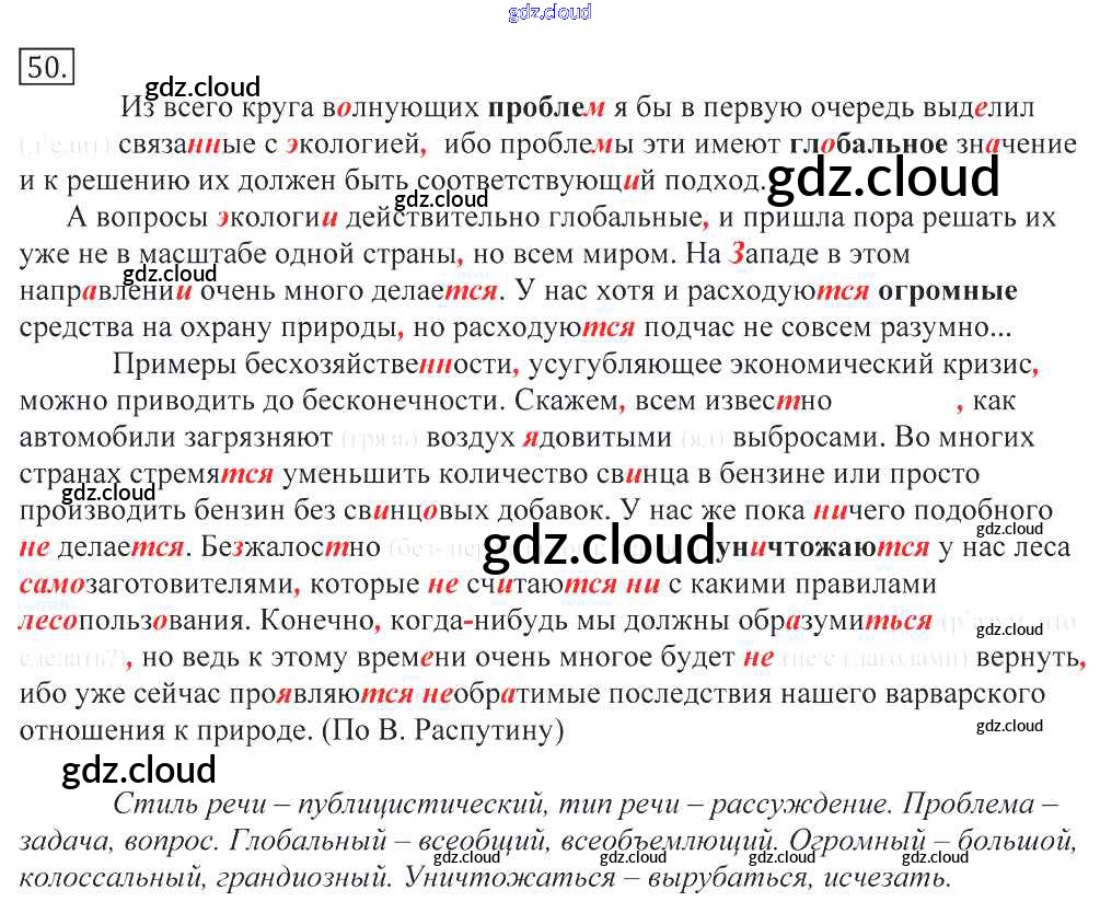 Ответ на задание 50 Учебник Русский язык за 10, 11 (десятый, одиннадцатый) класс Греков, Крючков, Чешко 2016