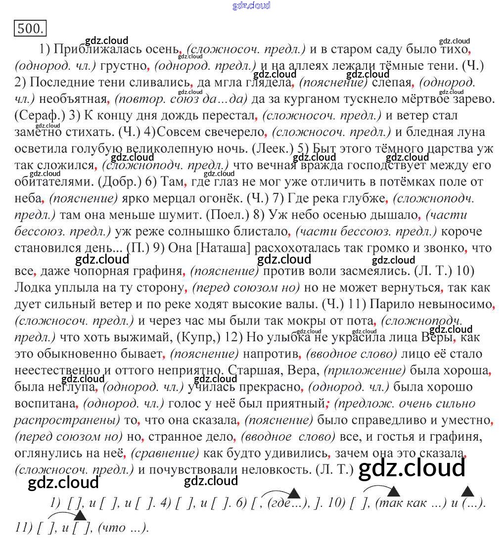 Ответ на задание 500 Учебник Русский язык за 10, 11 (десятый, одиннадцатый) класс Греков, Крючков, Чешко 2016
