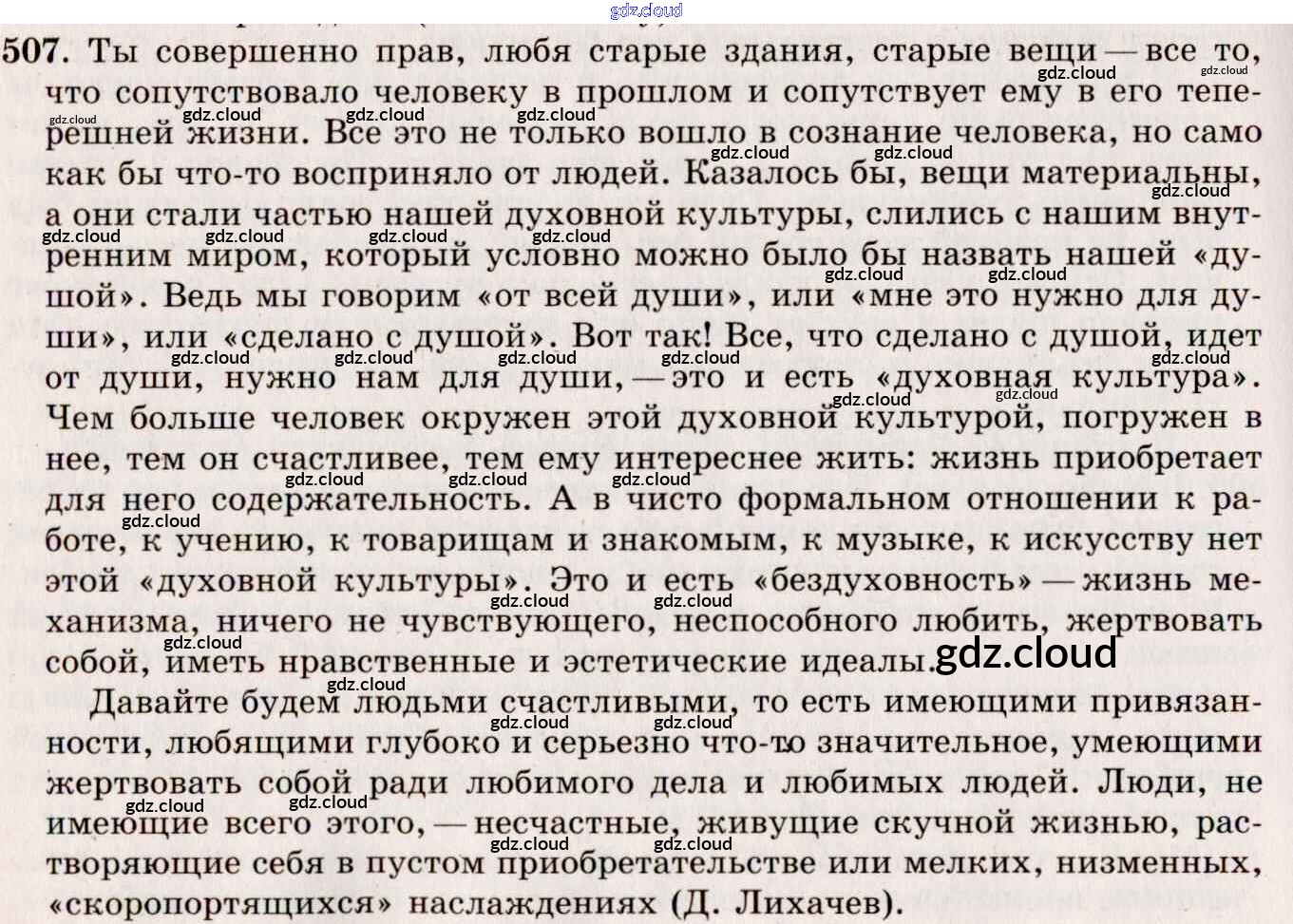 Ответ на задание 507 Учебник Русский язык за 10, 11 (десятый, одиннадцатый) класс Греков, Крючков, Чешко 2016