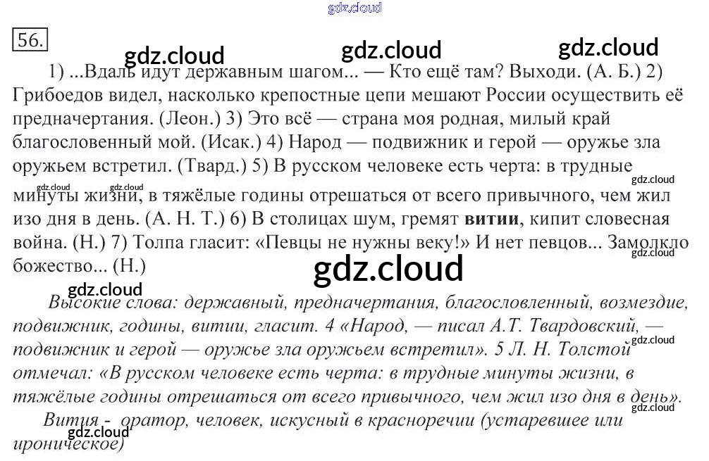 Ответ на задание 56 Учебник Русский язык за 10, 11 (десятый, одиннадцатый) класс Греков, Крючков, Чешко 2016