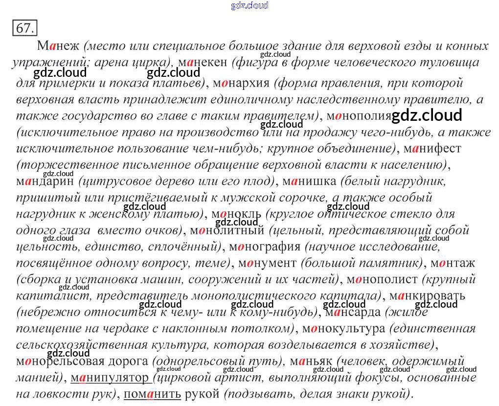 Ответ на задание 67 Учебник Русский язык за 10, 11 (десятый, одиннадцатый) класс Греков, Крючков, Чешко 2016