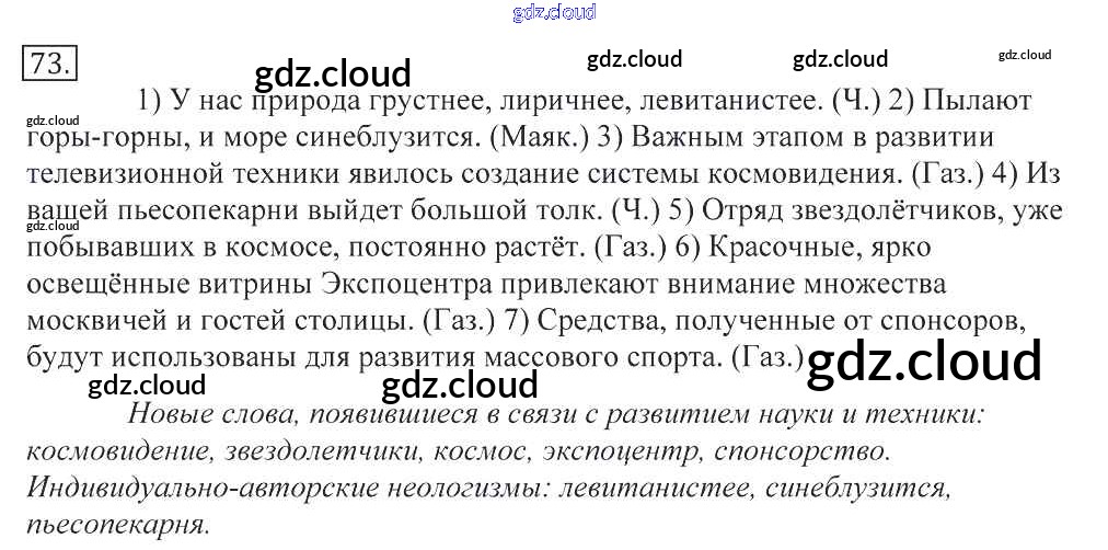 Ответ на задание 73 Учебник Русский язык за 10, 11 (десятый, одиннадцатый) класс Греков, Крючков, Чешко 2016 онлайн и без номера телефона.