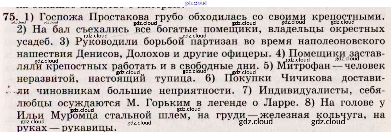 Ответ на задание 75 Учебник Русский язык за 10, 11 (десятый, одиннадцатый) класс Греков, Крючков, Чешко 2016