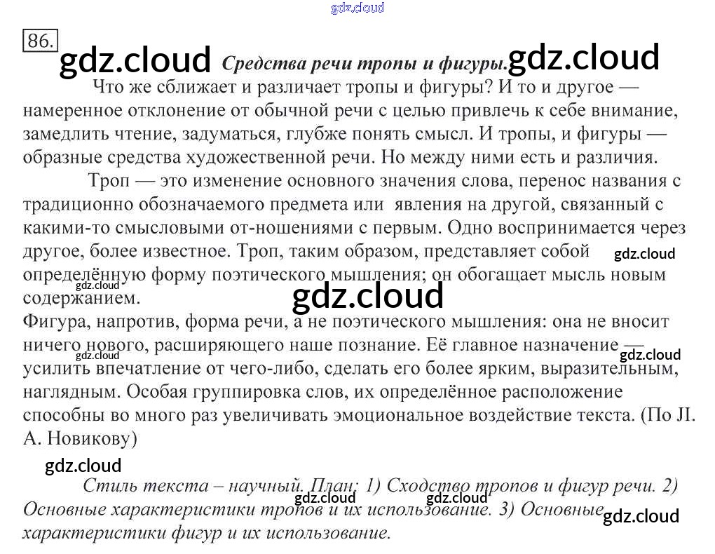 Ответ на задание 86 Учебник Русский язык за 10, 11 (десятый, одиннадцатый) класс Греков, Крючков, Чешко 2016 онлайн и без номера телефона.